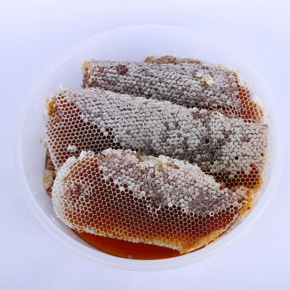 - الشكل: يأتي على هيئة خلايا شمعية متماسكة يظهر فيها التصنيع الطبيعي للنحل بوضوح.